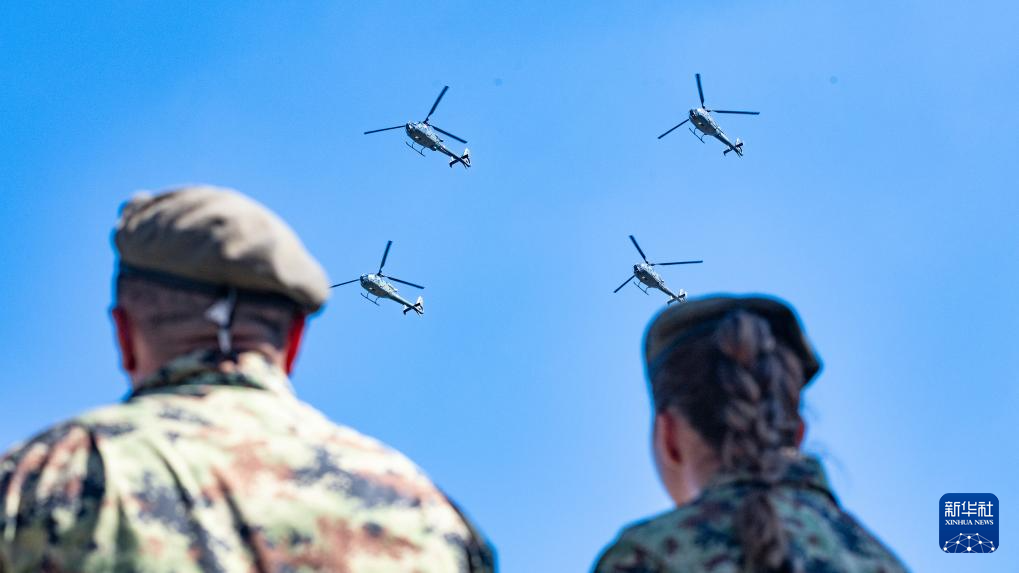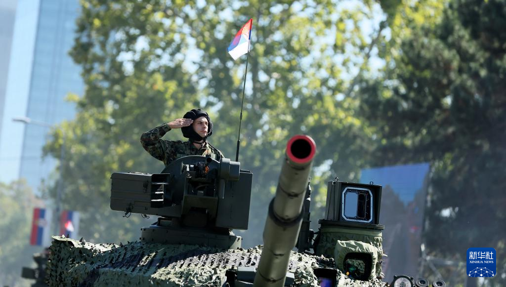 这是9月20日在塞尔维亚首都贝尔格莱德拍摄的“团结的力量”阅兵式现场。