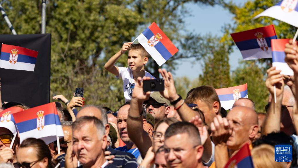 9月20日,在塞尔维亚首都贝尔格莱德,民众观看阅兵式。