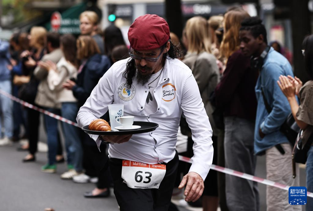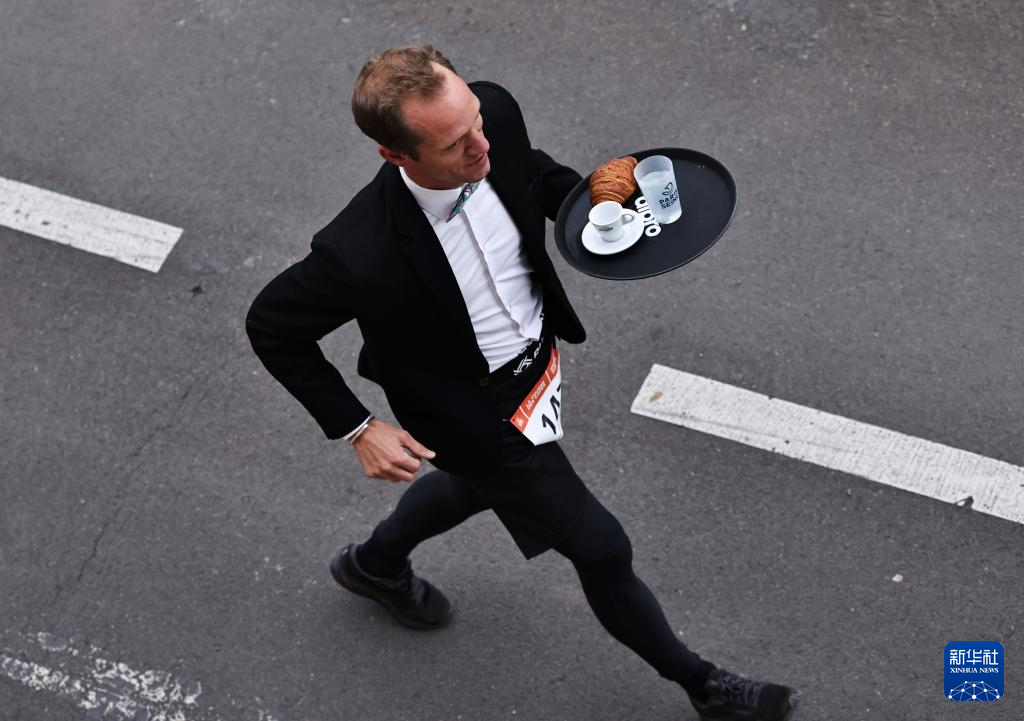 当日,法国首都巴黎举行具有百年历史的服务员赛跑活动。数百名穿着制服的男女服务员手托餐盘,餐盘内放着羊角面包、一个空咖啡杯和一杯水,从巴黎市政厅出发,沿环线跑完4公里的赛程。巴黎服务员赛跑最早始于1914年。今年还增加了普通民众赛跑环节。