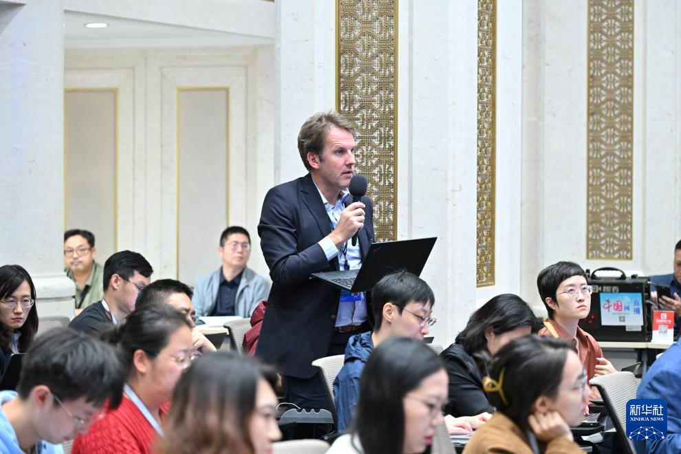 9月22日,国务院新闻办公室在北京举行“高质量完成‘十四五’规划”系列主题新闻发布会,中国人民银行行长潘功胜,金融监管总局局长李云泽,中国证监会主席吴清,中国人民银行副行长、国家外汇局局长朱鹤新介绍“十四五”时期金融业发展情况,并答记者问。这是记者在现场提问。