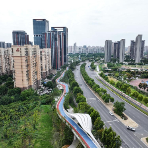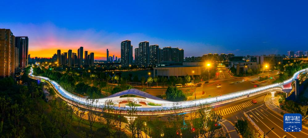 位于南京市雨花台区的数据线公园,是江苏省首座高线公园。这座全长约8公里的线性公园,以红蓝交织的步道为纽带串联起社区、医院、商圈等,成为市民家门口的“幸福走廊”。