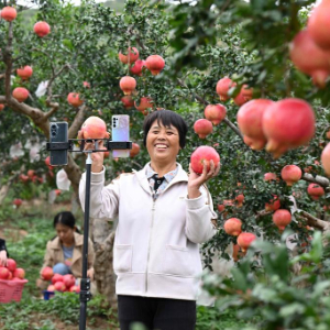 9月22日,在河北省石家庄市元氏县北正乡北正村,农民在石榴园直播带货。