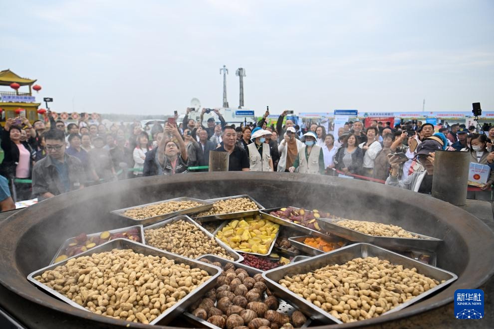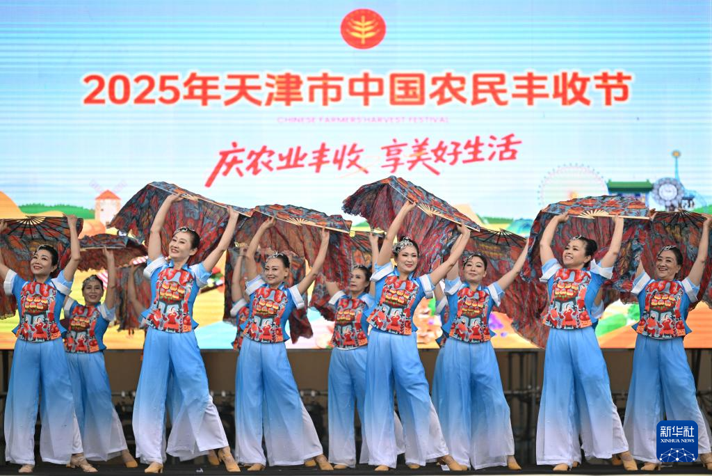 当日是第八个中国农民丰收节,以“庆农业丰收 享美好生活”为主题的2025年天津市中国农民丰收节主会场活动在天津市北辰区西堤头镇曙光水镇举行。活动现场进行了丰收农品展示、农趣体验等活动,吸引市民游客前来感受丰收的欢庆氛围。
