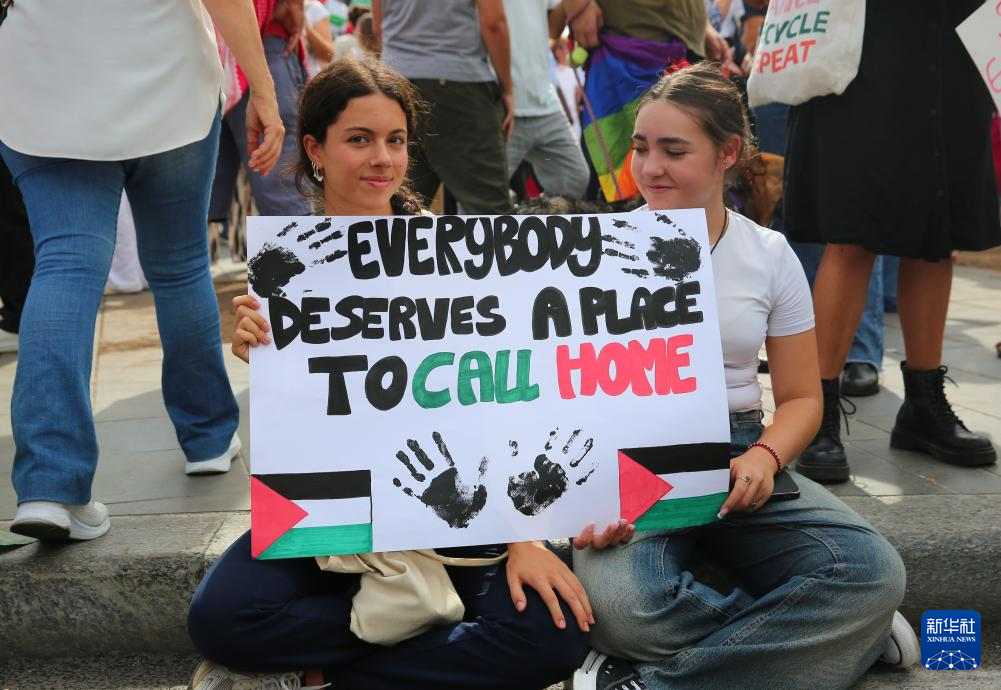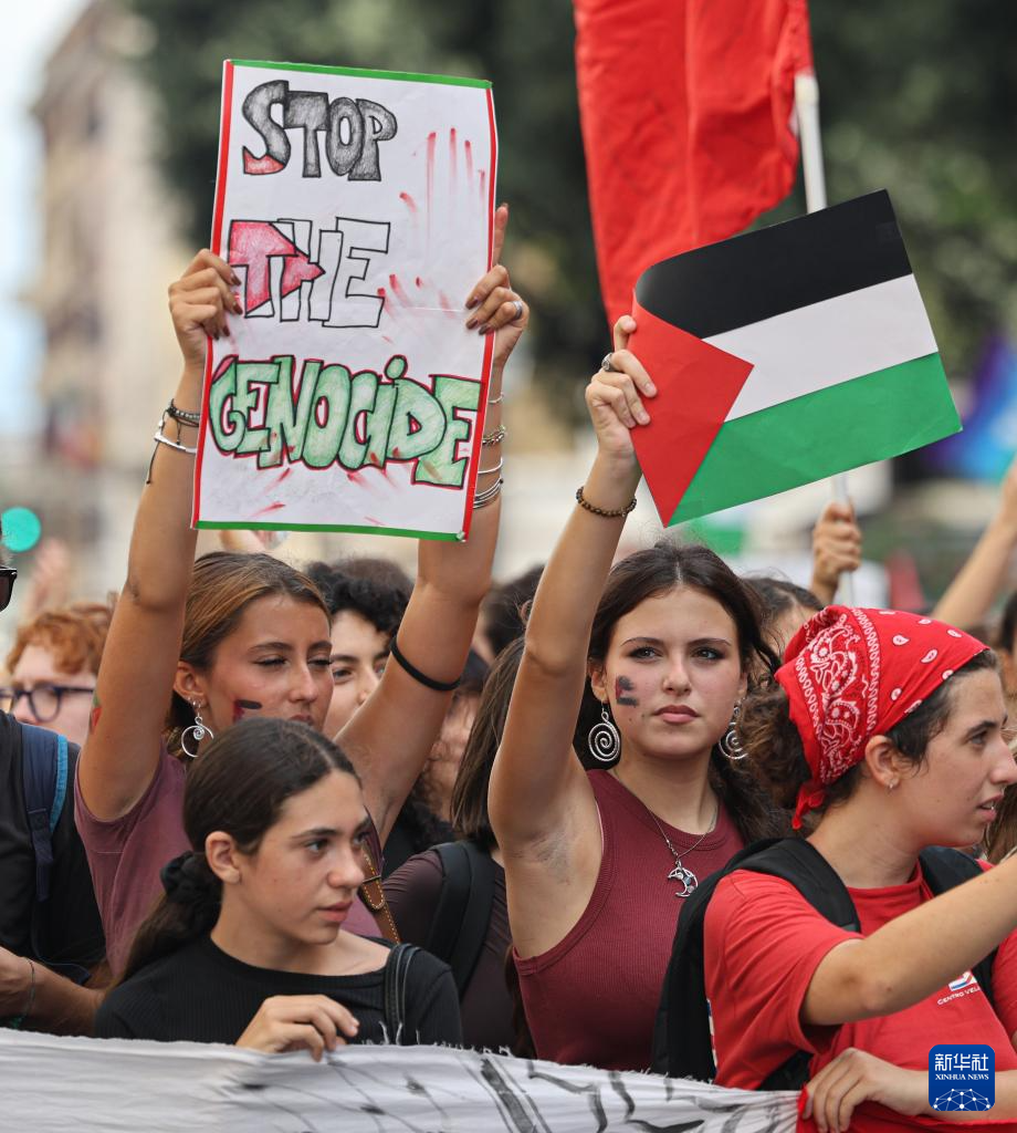 9月22日,人们在意大利罗马参加声援巴勒斯坦的示威游行。