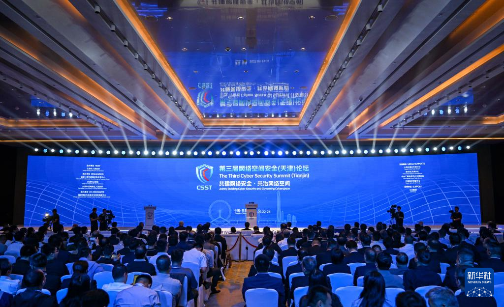 这是9月23日拍摄的第三届网络空间安全(天津)论坛开幕式现场。