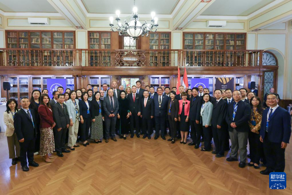 9月22日,在匈牙利布达佩斯举办的中匈大学校长对话会开幕式上,参会代表合影留念。