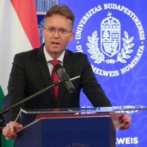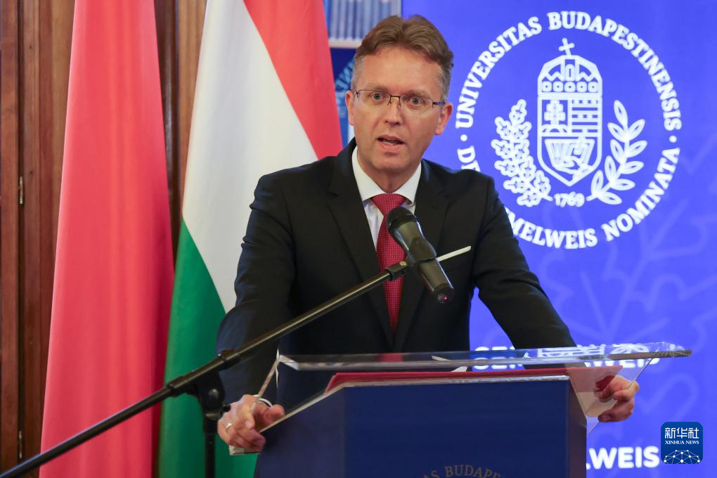 9月22日,在匈牙利布达佩斯举办的中匈大学校长对话会开幕式上,匈牙利文化与创新部长汉科·鲍拉日致辞。