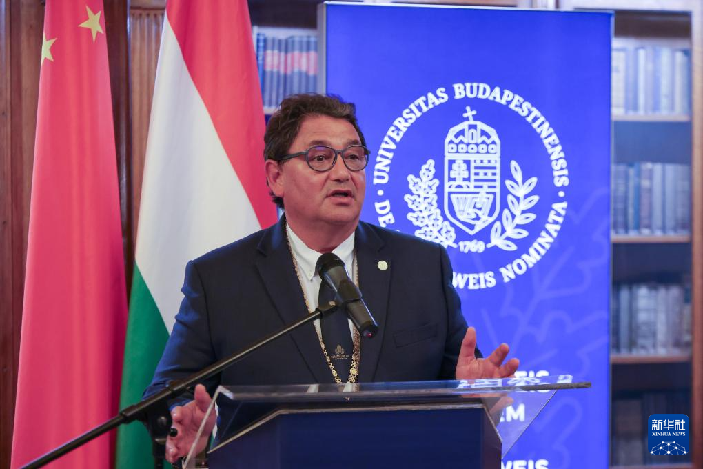 9月22日,在匈牙利布达佩斯举办的中匈大学校长对话会开幕式上,泽梅尔魏斯医科大学校长兼匈牙利校长联盟主席迈尔凯伊·贝洛致辞。