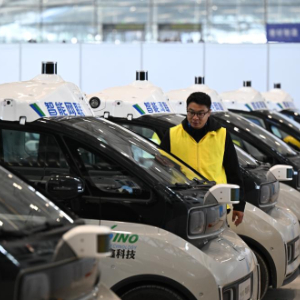 9月20日,工作人员在调试智能网联汽车装调运维项目比赛用车。