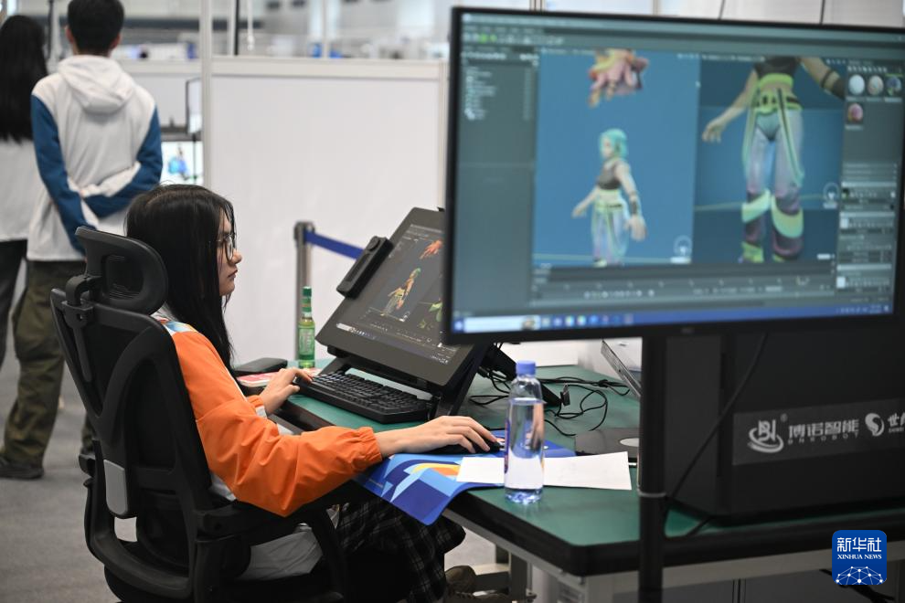 9月21日,选手在3D数字游戏艺术项目比赛中。