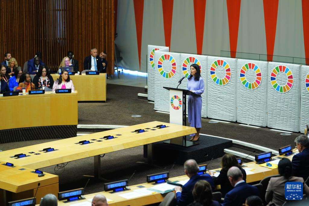 9月22日,在位于纽约的联合国总部,第80届联大主席贝尔伯克在“可持续发展目标时刻”活动上发表讲话。