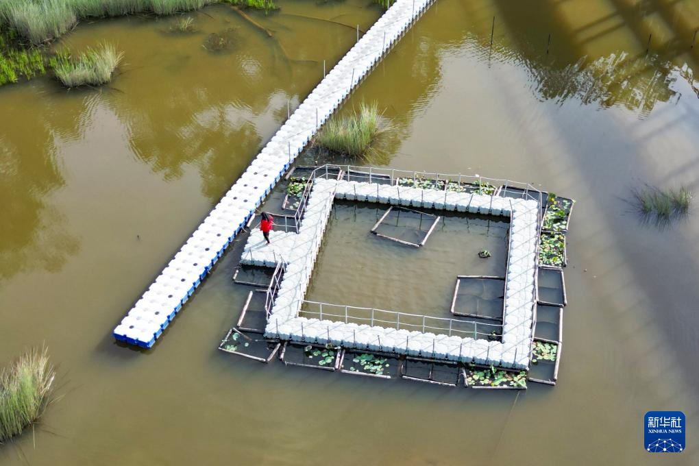 这是9月3日在马来西亚彭亨州珍尼湖生物圈保护区拍摄人的工培育荷花的基地(无人机照片)。