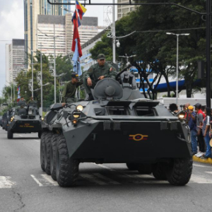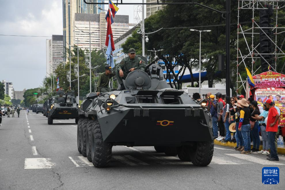 9月23日,在委内瑞拉首都加拉加斯,参加游行的装甲车辆列队行进。