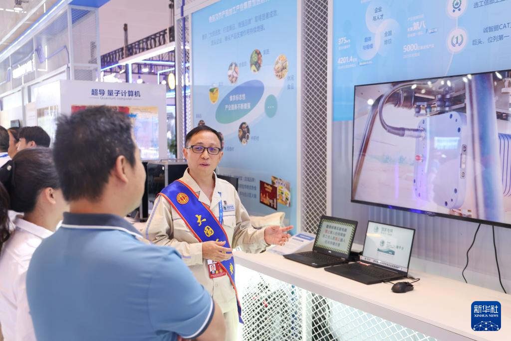 9月23日,在重庆悦来国博中心举行的第三届大国工匠创新交流大会暨大国工匠论坛现场,韩世海给观众介绍网络安全相关知识。
