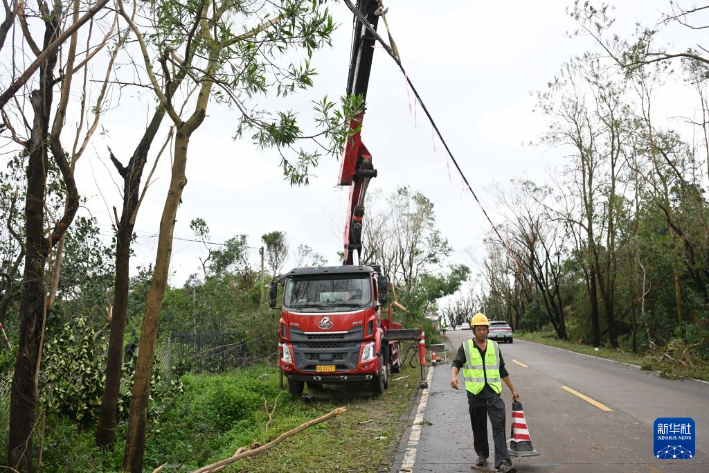 9月25日,在广东阳江市阳东区的228国道,电信工作人员在抢修线路。