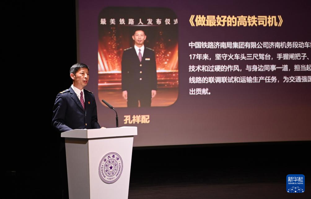 9月26日,中国铁路济南局集团有限公司济南机务段动车组司机孔祥配在清华大学作报告。