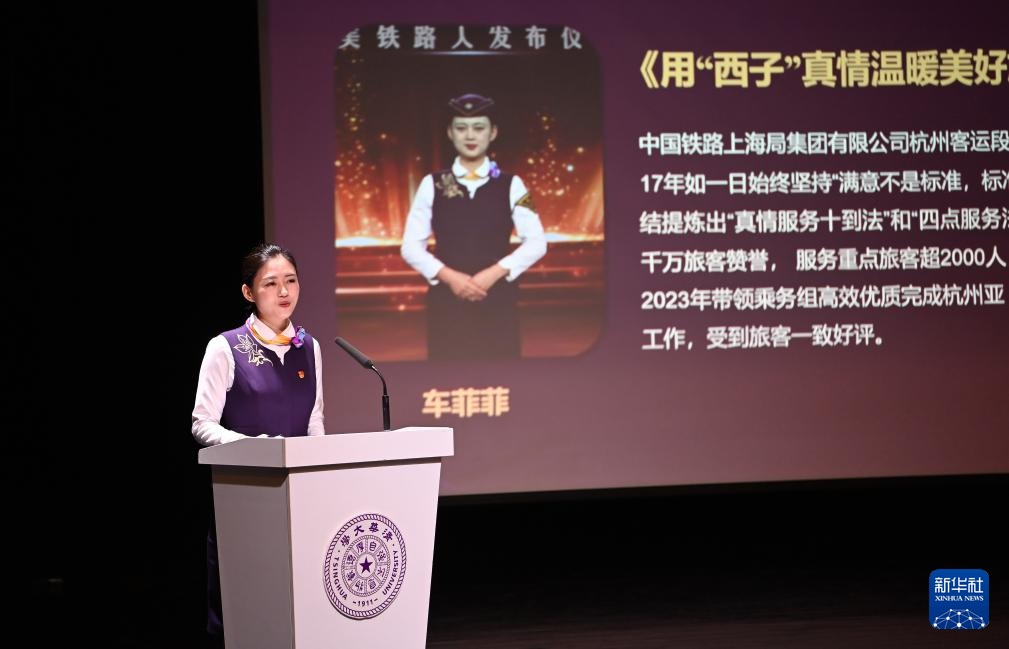 9月26日,中国铁路上海局集团有限公司杭州客运段高铁一车队“西子号”列车长车菲菲在清华大学作报告。