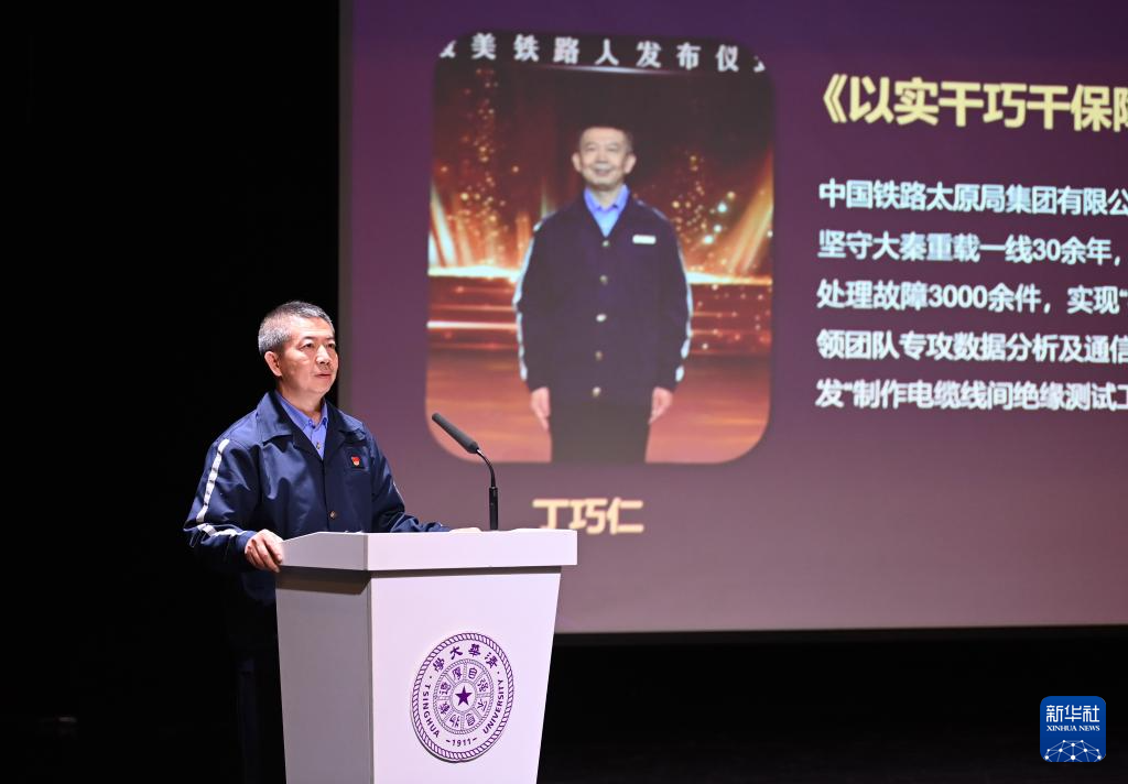 9月26日,中国铁路太原局集团有限公司大同电务段湖东移动车间通信工丁巧仁在清华大学作报告。