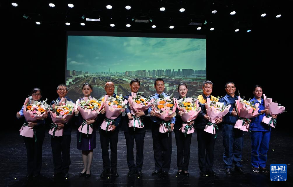 9月26日,10名“最美铁路人”在先进事迹报告会现场合影。