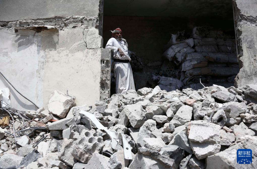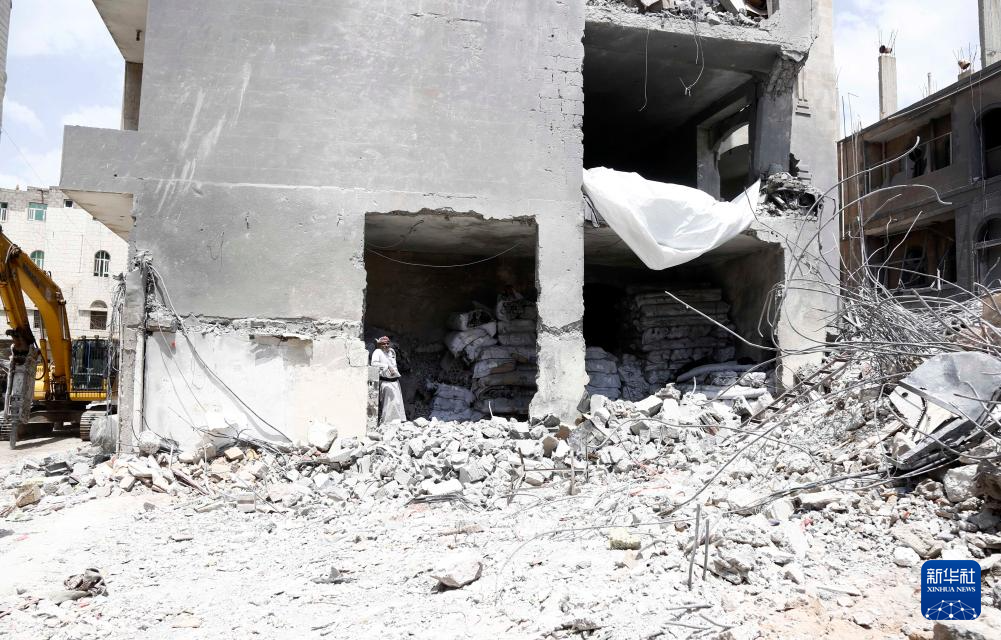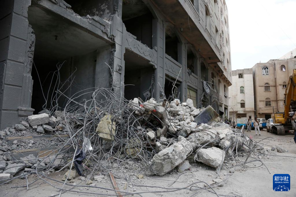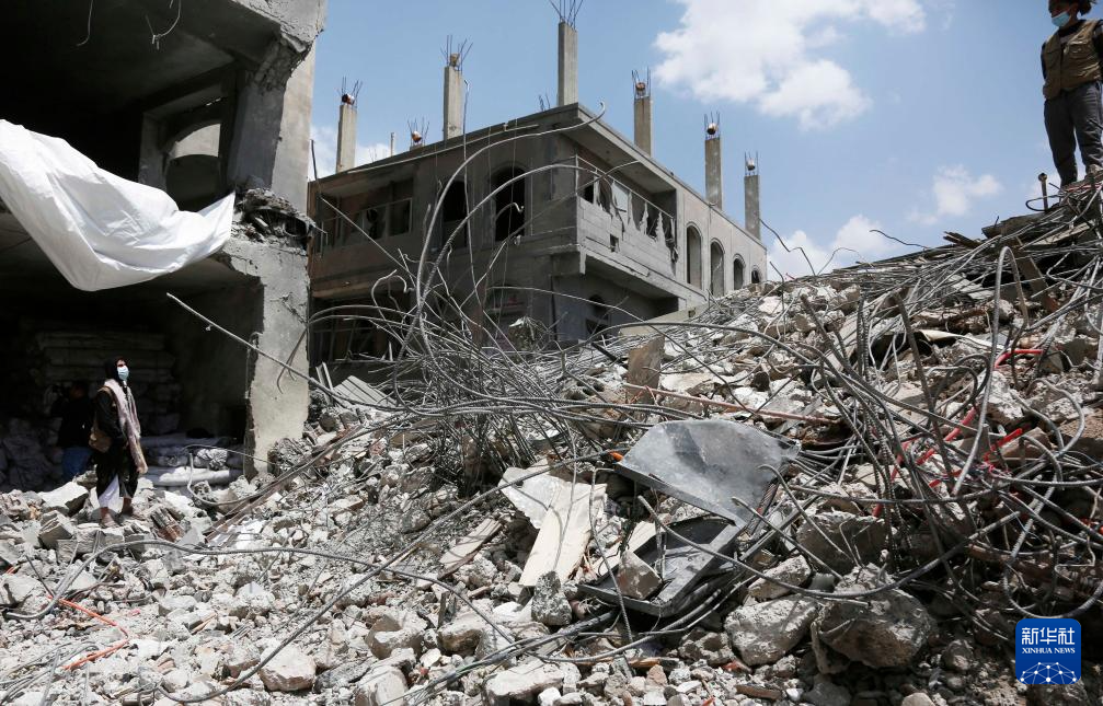 这张9月26日拍摄的照片显示的是也门首都萨那一处在以军空袭中损毁的建筑。