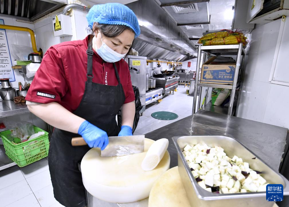 9月26日,朝阳区香河园街道中央厨房的厨师在准备制作午餐。