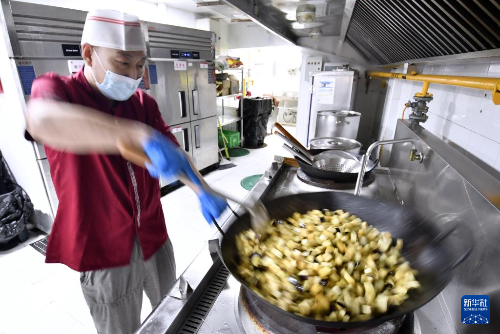 9月26日,朝阳区香河园街道的中央厨房的厨师在为老人们烹制午餐。
