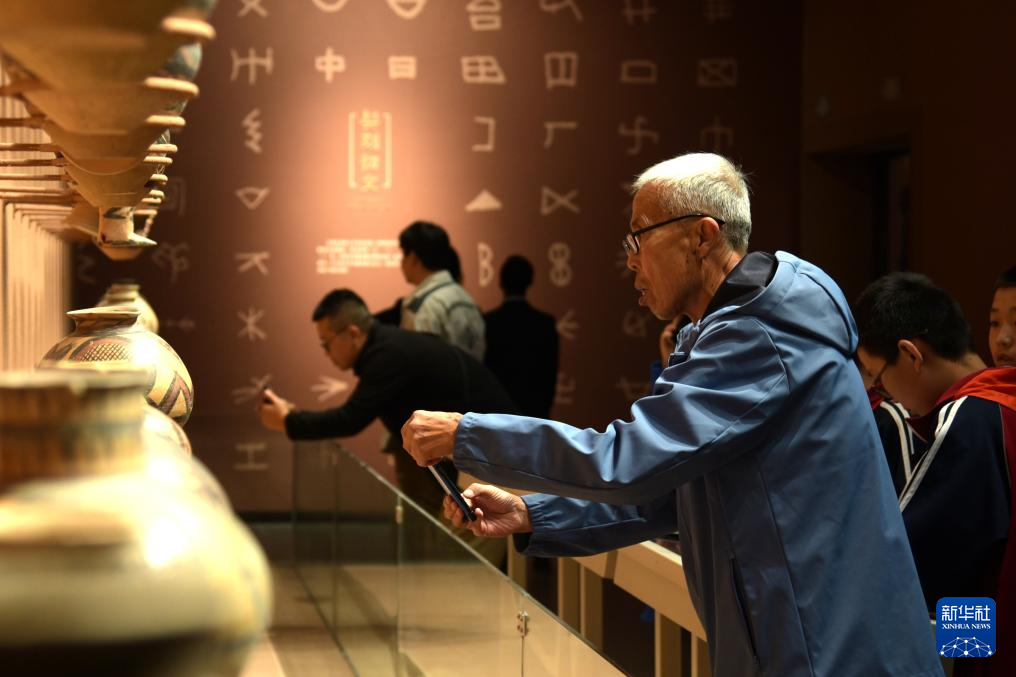 9月26日,游客在甘肃省临洮县马家窑文化研究展示中心参观。