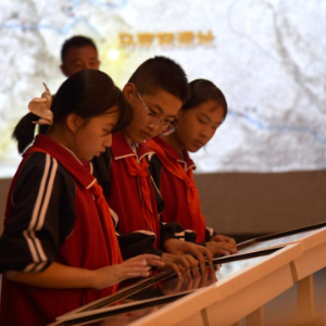 9月26日,在甘肃省临洮县马家窑文化研究展示中心,当地中学生通过数字化平台了解马家窑文化。