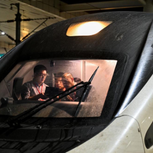 9月27日,工作人员在55601次试验列车上进行车内巡视作业。