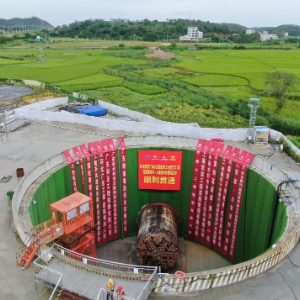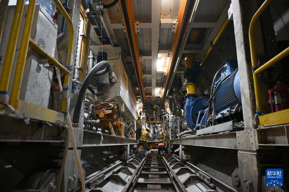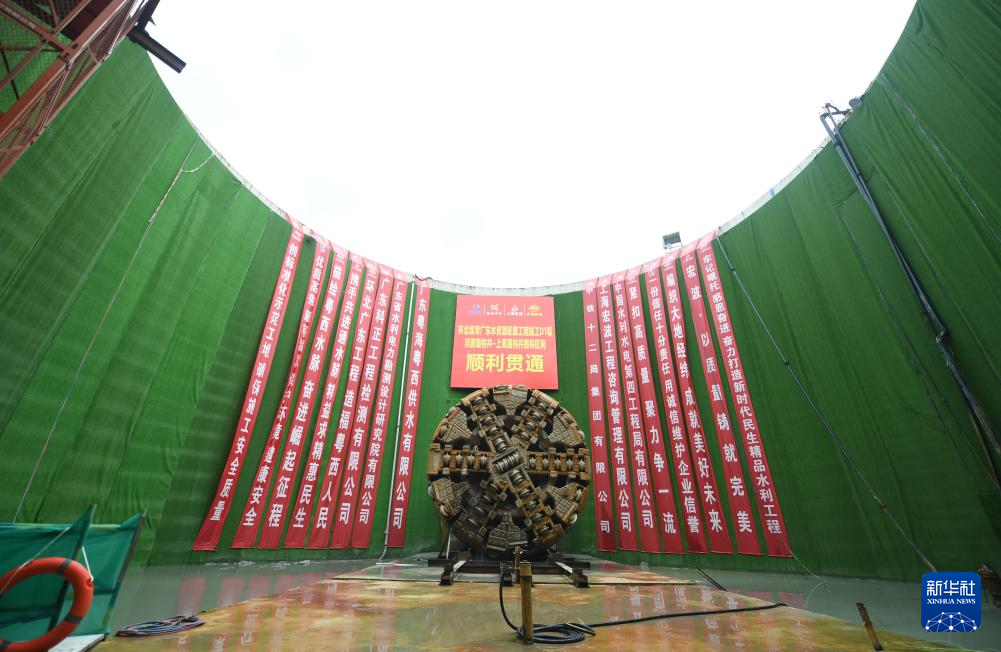 9月28日在广东廉江的施工现场拍摄的“粤海环北8号”盾构机顺利贯通环北部湾广东水资源配置工程首个盾构区间。
