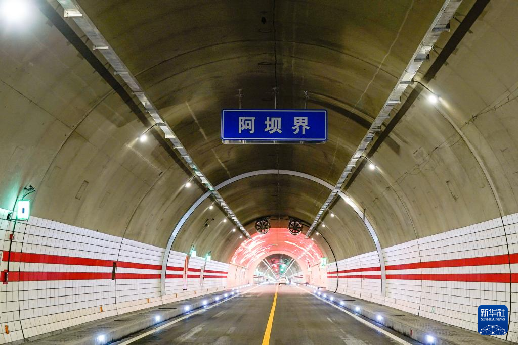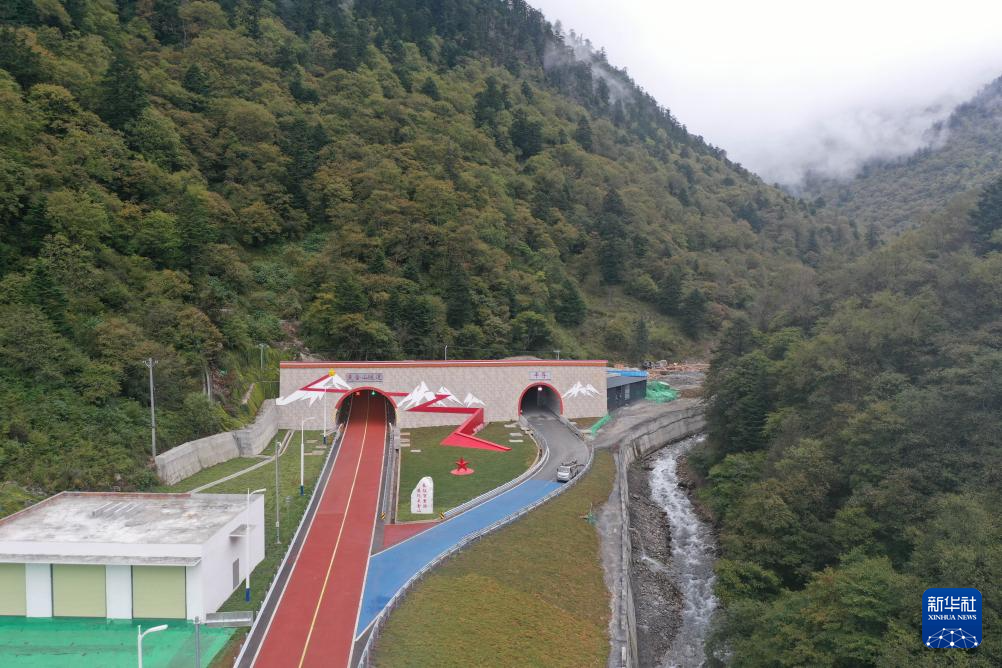 这是9月28日在四川省小金县拍摄的夹金山隧道出口(无人机照片)。