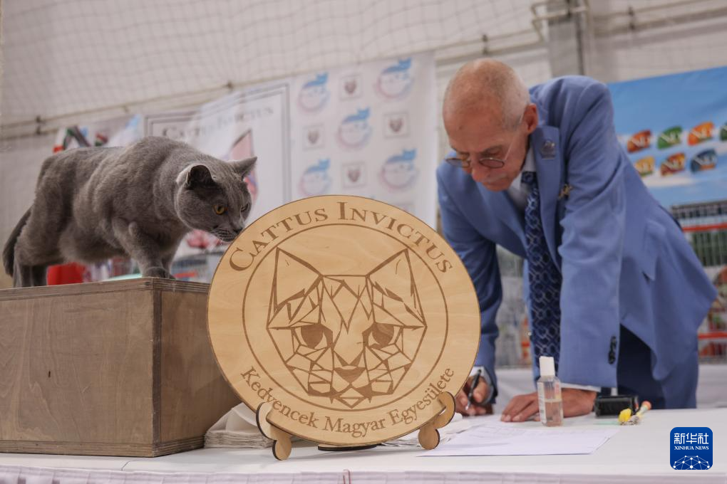 9月28日,在匈牙利布达佩斯,裁判在观察考量参赛猫。