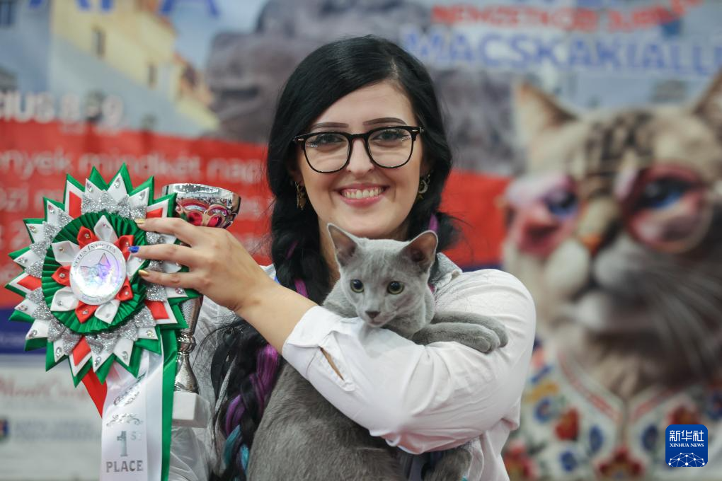 9月28日,在匈牙利布达佩斯,获奖的猫和主人合影。
