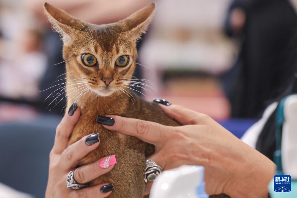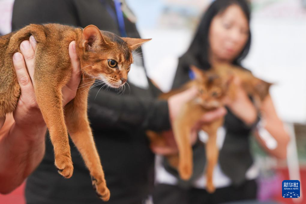 9月28日,在匈牙利布达佩斯,主人和猫参加国际猫展。