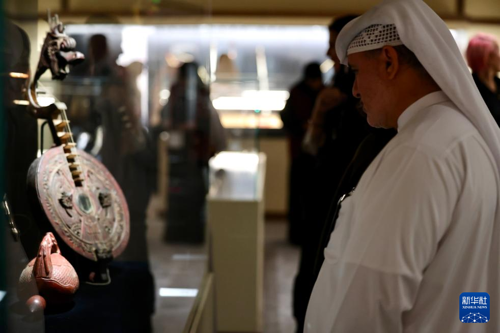 9月28日,在沙特阿拉伯首都利雅得,观众参观“天地同和——中国古代乐器展”。