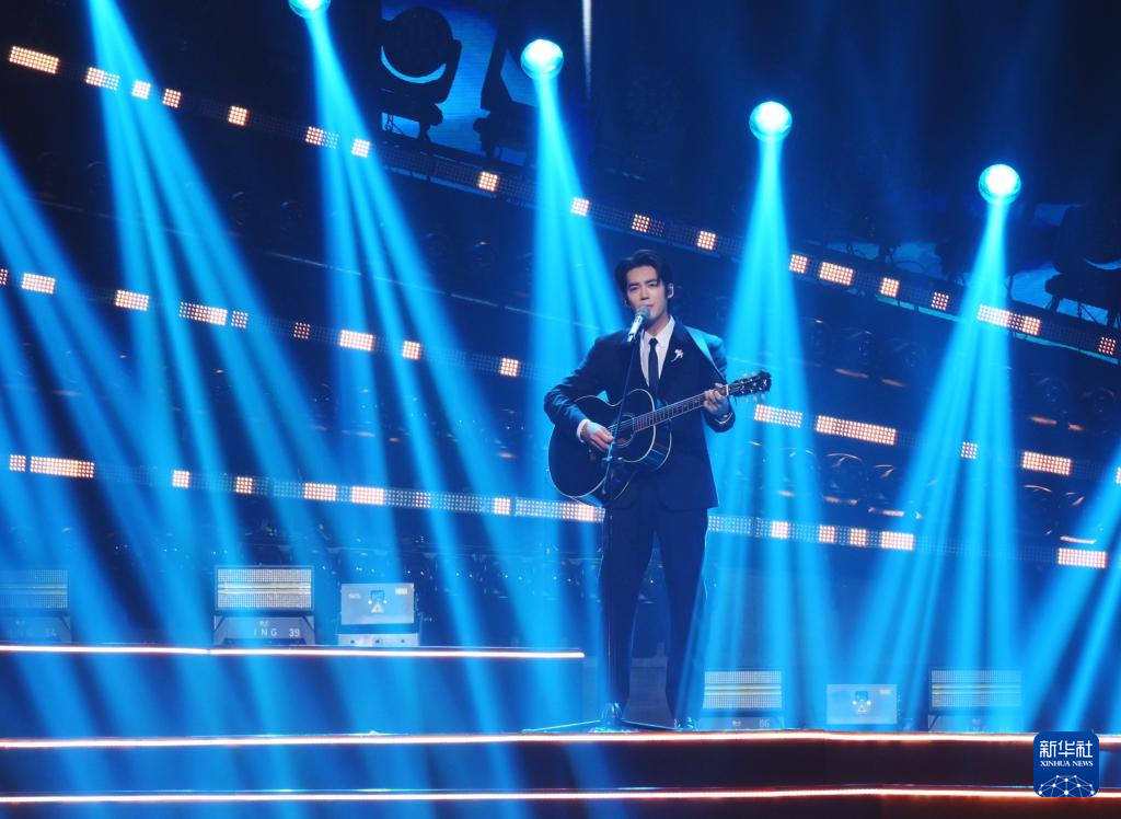 9月28日,王力宏(左)和单依纯在演唱《落叶归根》。