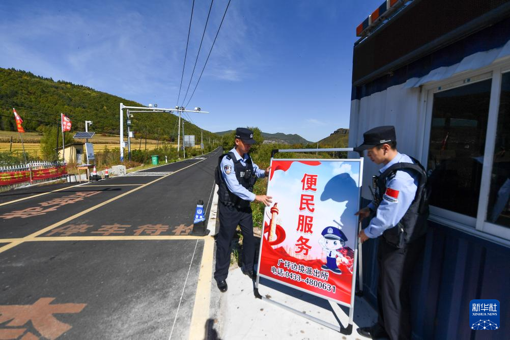 9月27日,吉林出入境边防检查总站广坪边境派出所民警在G331执勤点整理便民物资。