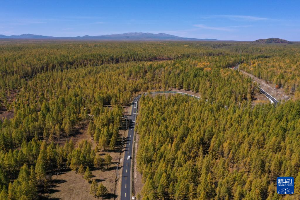 这是9月27日在吉林省安图县二道白河镇拍摄的长白山脚下G331风景(无人机照片)。