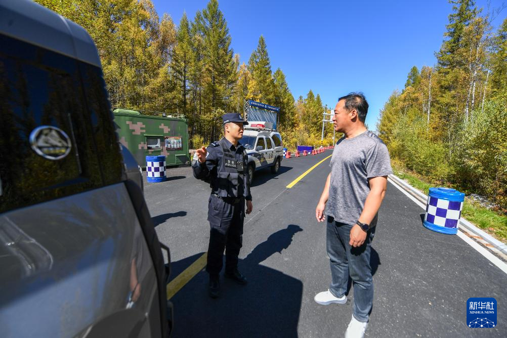 9月27日,吉林出入境边防检查总站安图边境管理大队民警在G331双目峰边境检查站对驾驶员进行安全提示。