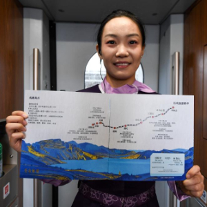 9月28日,乘务员在G8166次列车上展示首发纪念册。