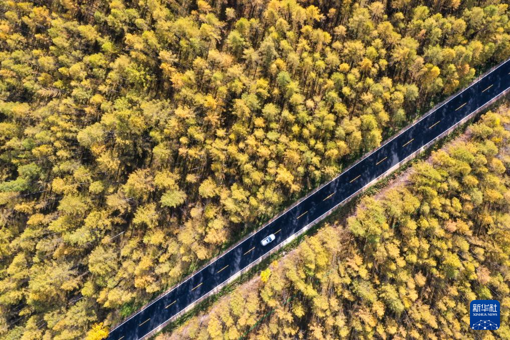 这是9月27日在吉林省安图县二道白河镇拍摄的G331风景(无人机照片)。