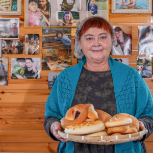 9月26日,在内蒙古呼伦贝尔市额尔古纳市恩和俄罗斯族民族乡,孙运梅将刚出炉的奶酪包端出列巴房。