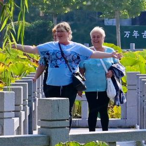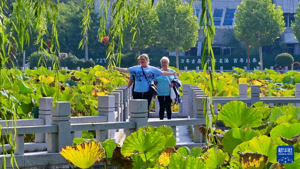 9月30日,治疗结束后的俄罗斯患者在辽宁鞍山汤岗子康复医院内散步。