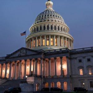 这是9月30日黄昏时分在美国首都华盛顿拍摄的美国国会大厦。