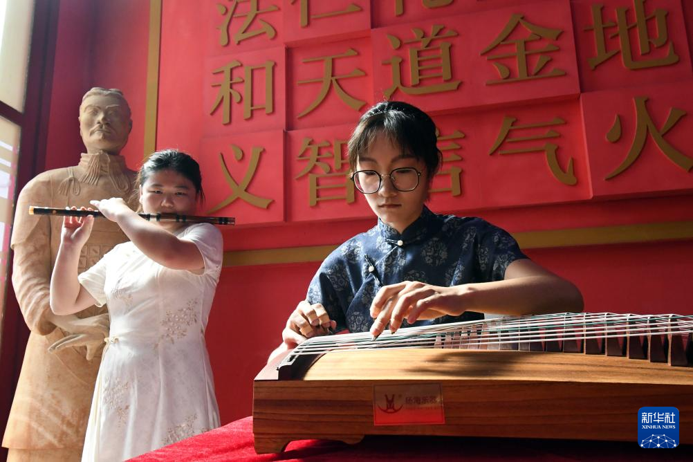 9月30日,在古巴首都哈瓦那,哈瓦那大学孔子学院的两名中国教师在“茶和天下·雅集”活动中演奏乐曲。