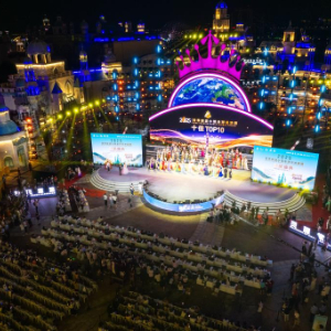 这是10月2日在常德柳叶湖桃花岛拍摄的2025世界旅游小姐全球总决赛现场(无人机照片)。