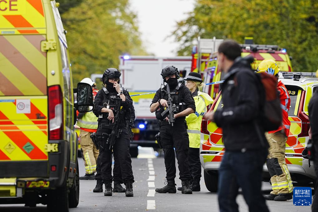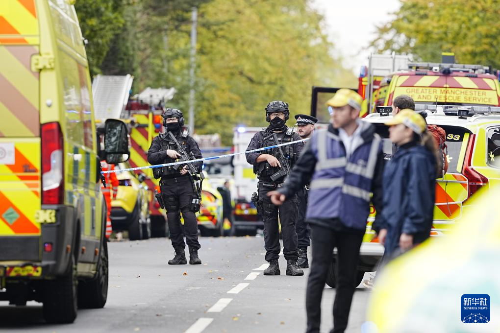 10月2日,警察和应急人员在英国曼彻斯特的犹太教堂袭击事件现场工作。