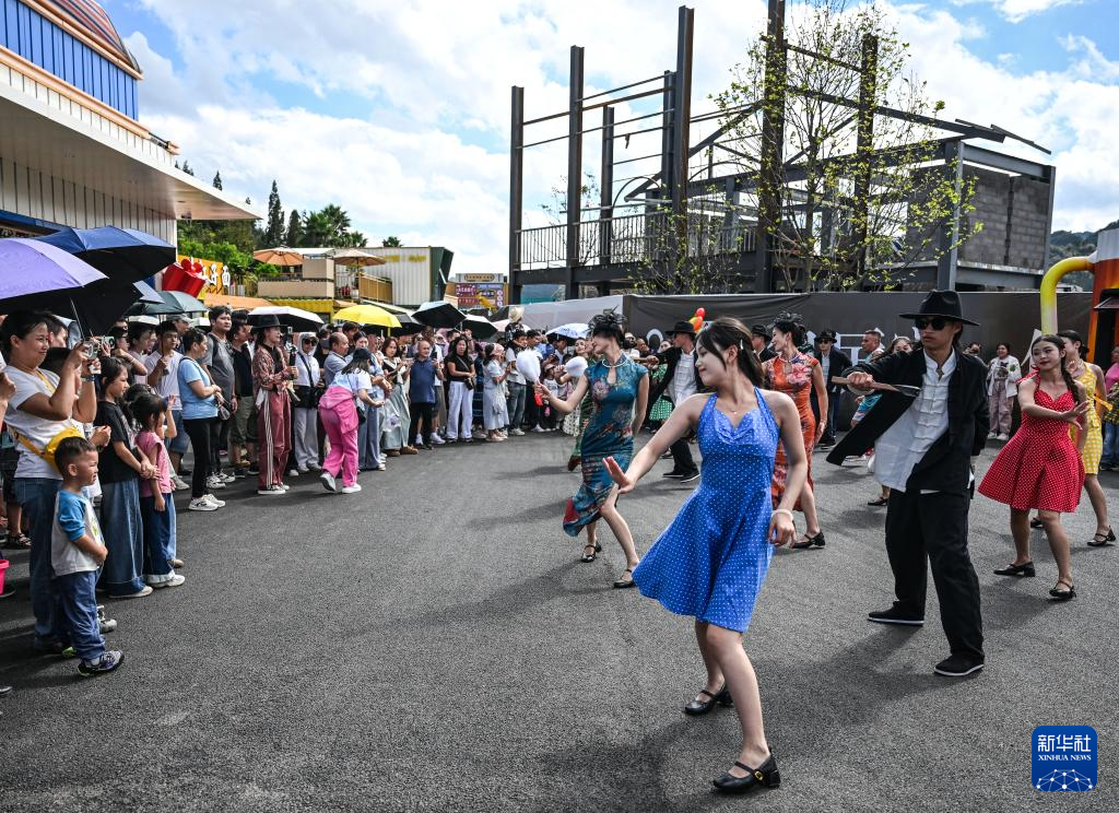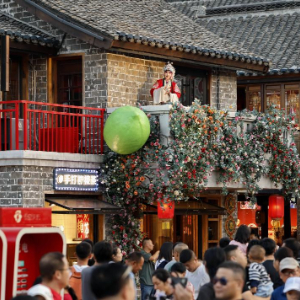 10月3日,演员在河北省唐山市丰南区河头老街景区为游客表演节目。