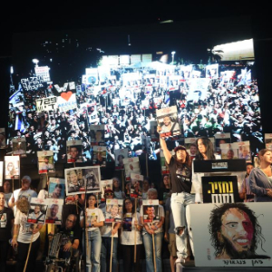 10月4日,被扣押人员家属和支持停战的人们在以色列特拉维夫举行游行集会,要求政府迅速在加沙地带实现停火,让被扣押人员回家。