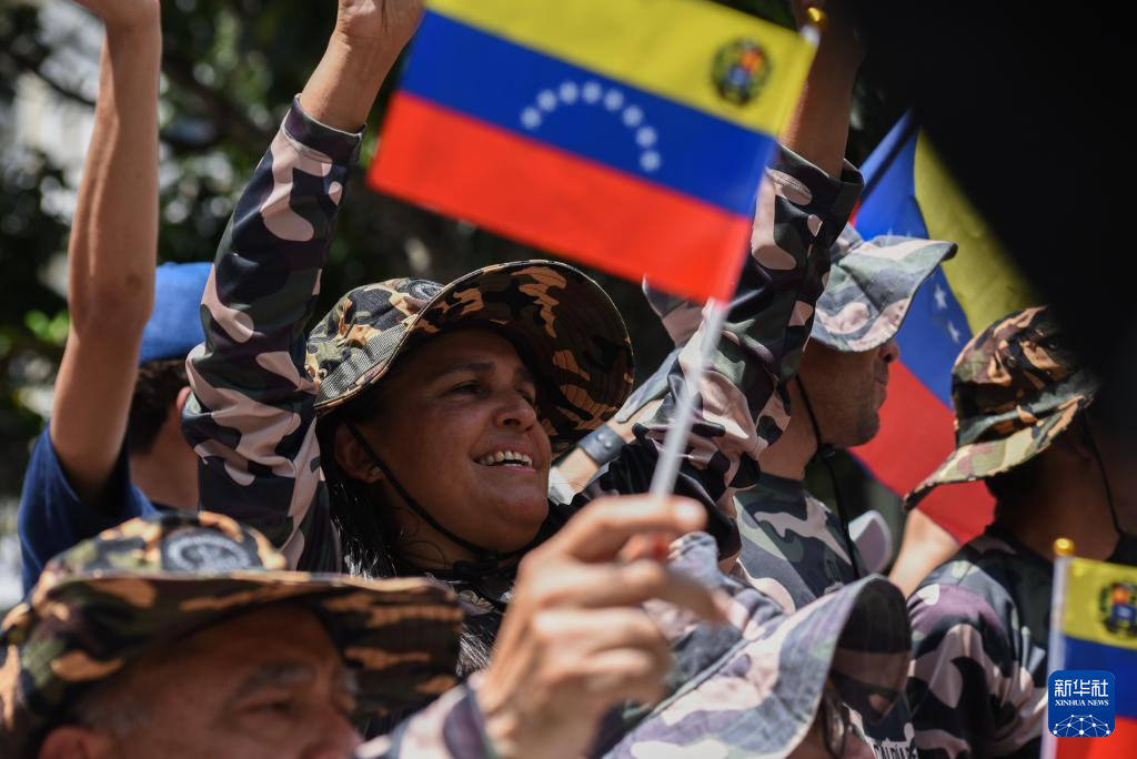 10月4日,在委内瑞拉首都加拉加斯的玻利瓦尔广场,玻利瓦尔民兵组织成员参与全国特别军事演习。